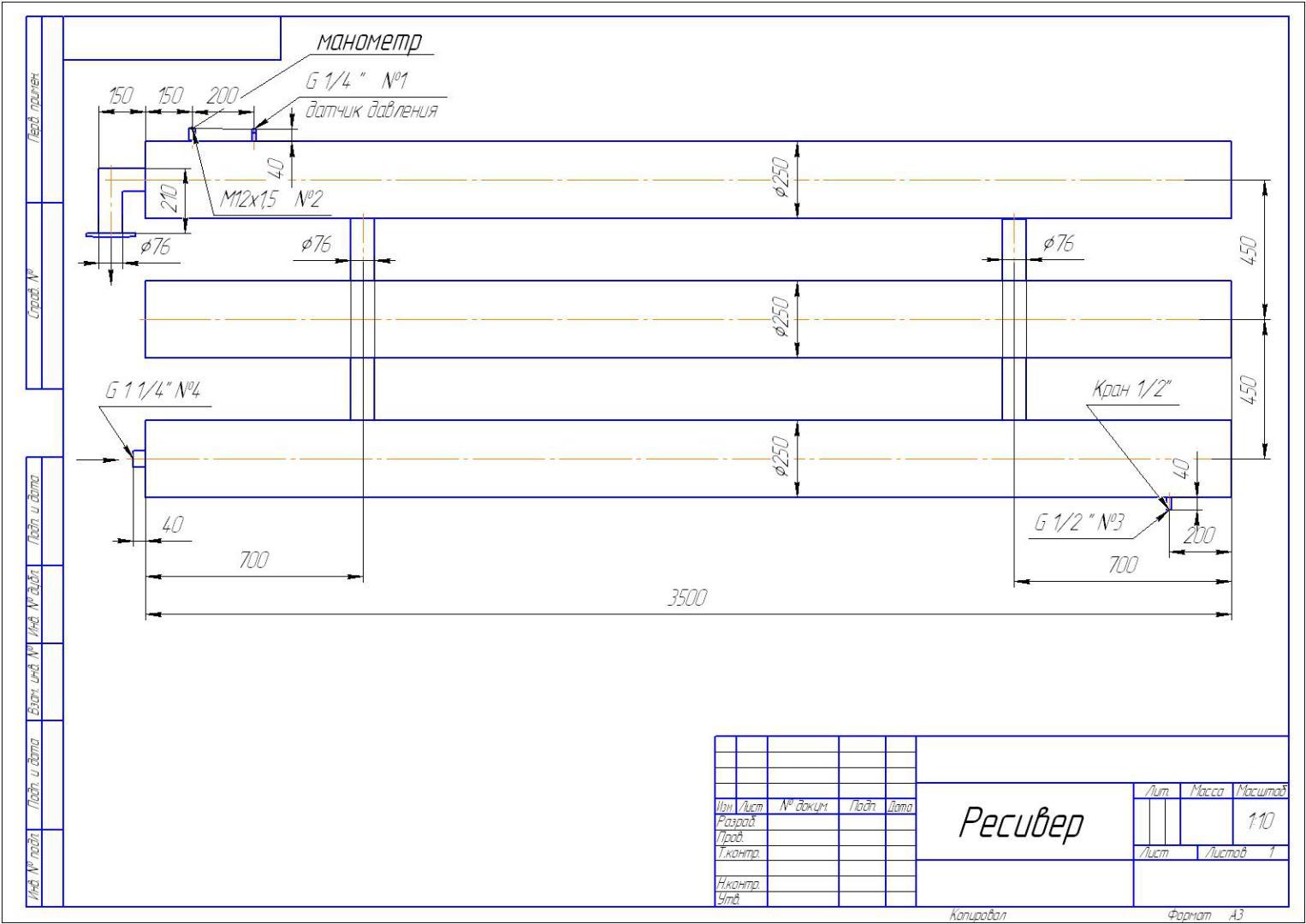 Рассмотрите возможность изготовления ресивера по прилагаемому чертежу.