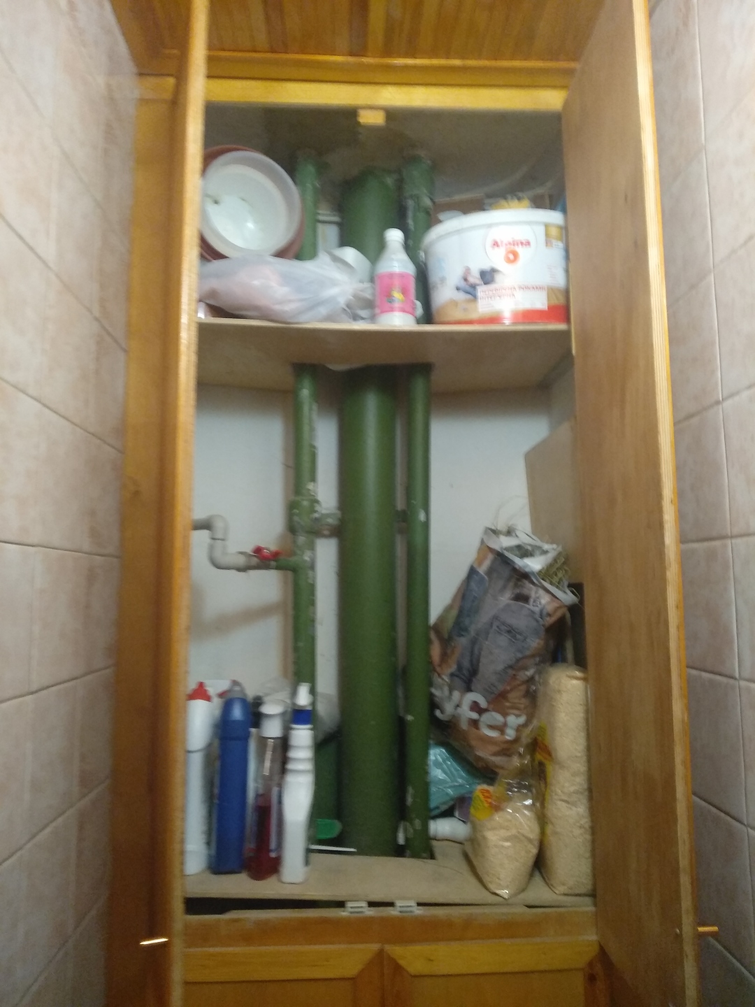 Положить плитку, заменить туалет, зашить стояки, натяжной потолок