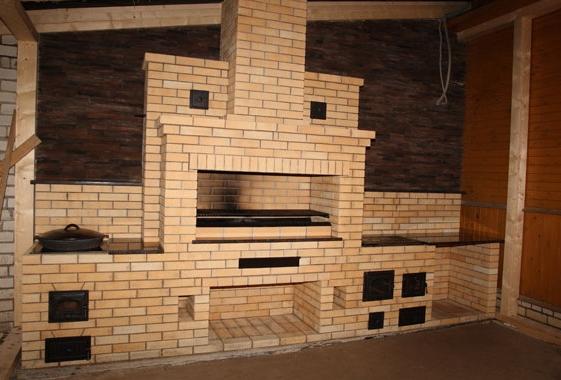 В открытой беседке хочу выложить барбекю с печкой (варочная) из кирпича. Длина по фундаменту до 4м. Включает в себя варочную печку, мангал-барбекю, мойку, разделочный столик. Пример на фото.