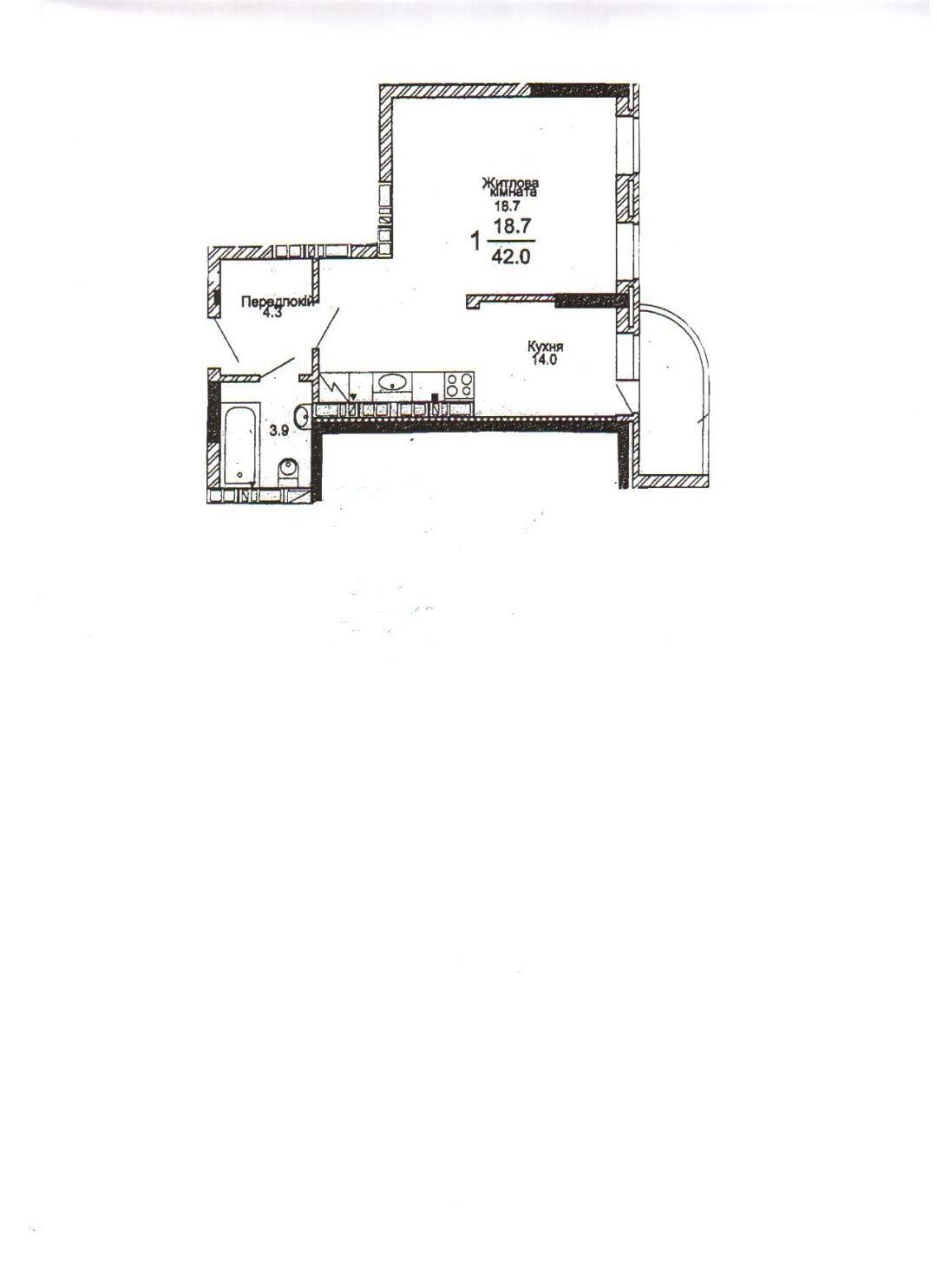 Необходим ремонт в 1 комнатной квартире в Киеве, площадь 42 м2 .