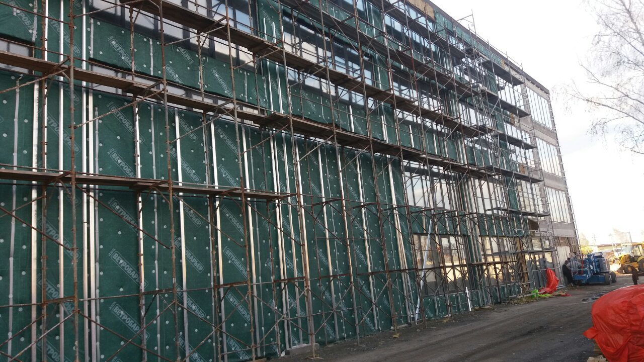 Необходимо смонтировать керамогранитную плитку размером 1200х1200мм.на фасад здания.Мин.вата и направляющие под плитку уже смонтированы,а также выставлены леса.