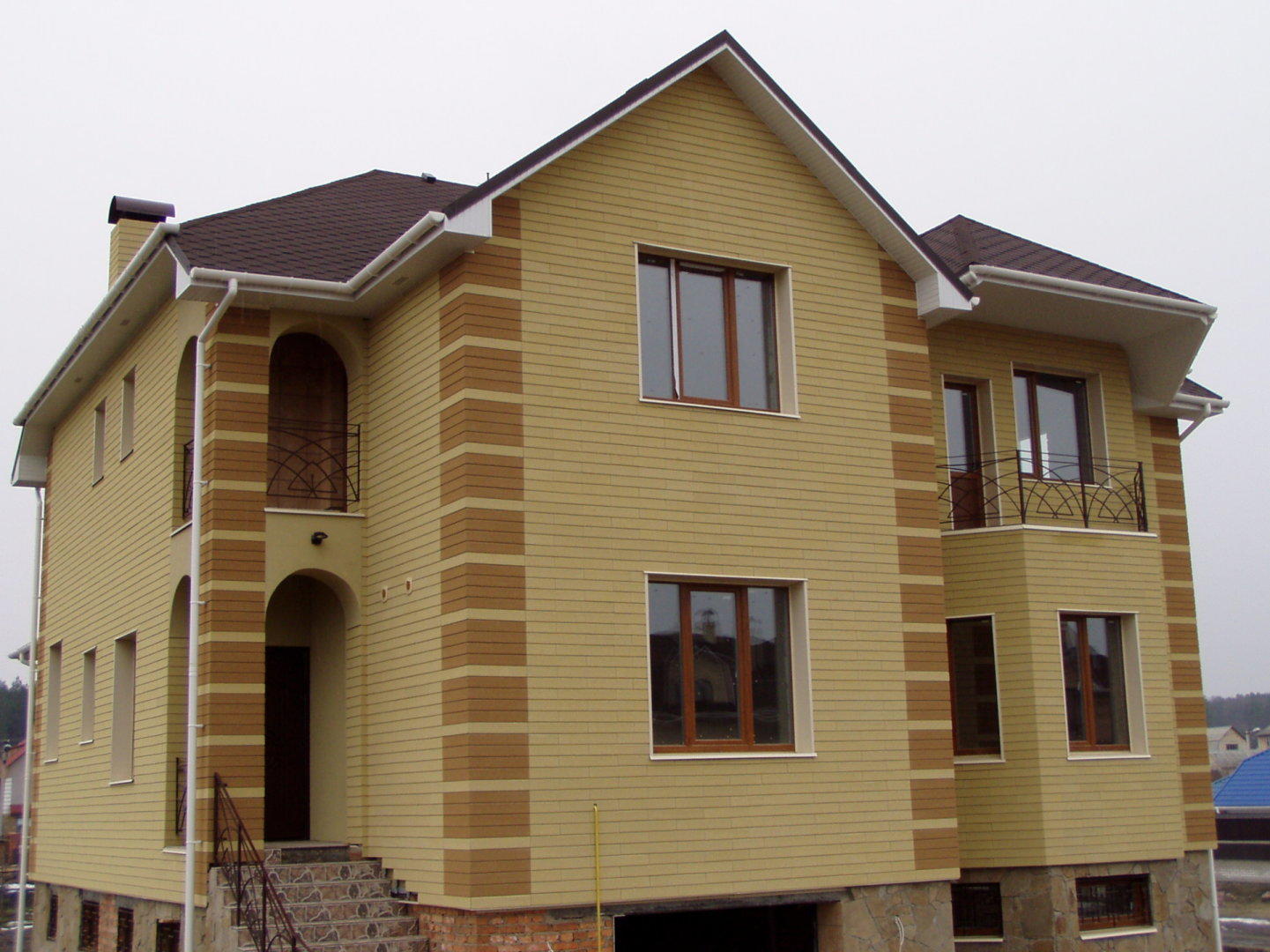 Фасадные работы, поклейка пенопласта на фасад