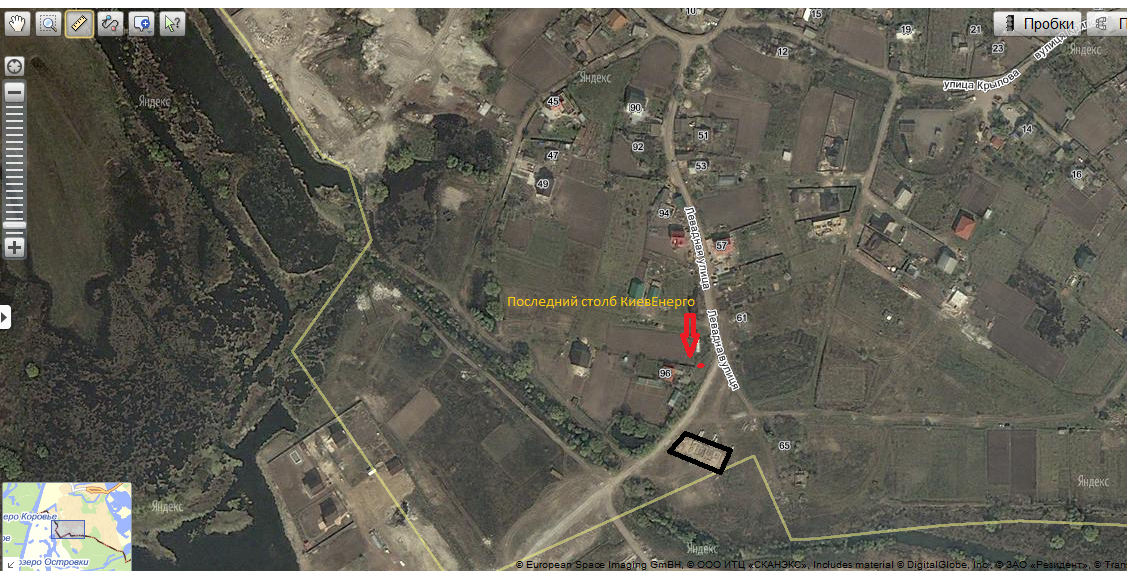 Участок находится в 10-ти метрах от границ г.Киева, и в 50-ти метрах находится последний столб КиевЕнерго.