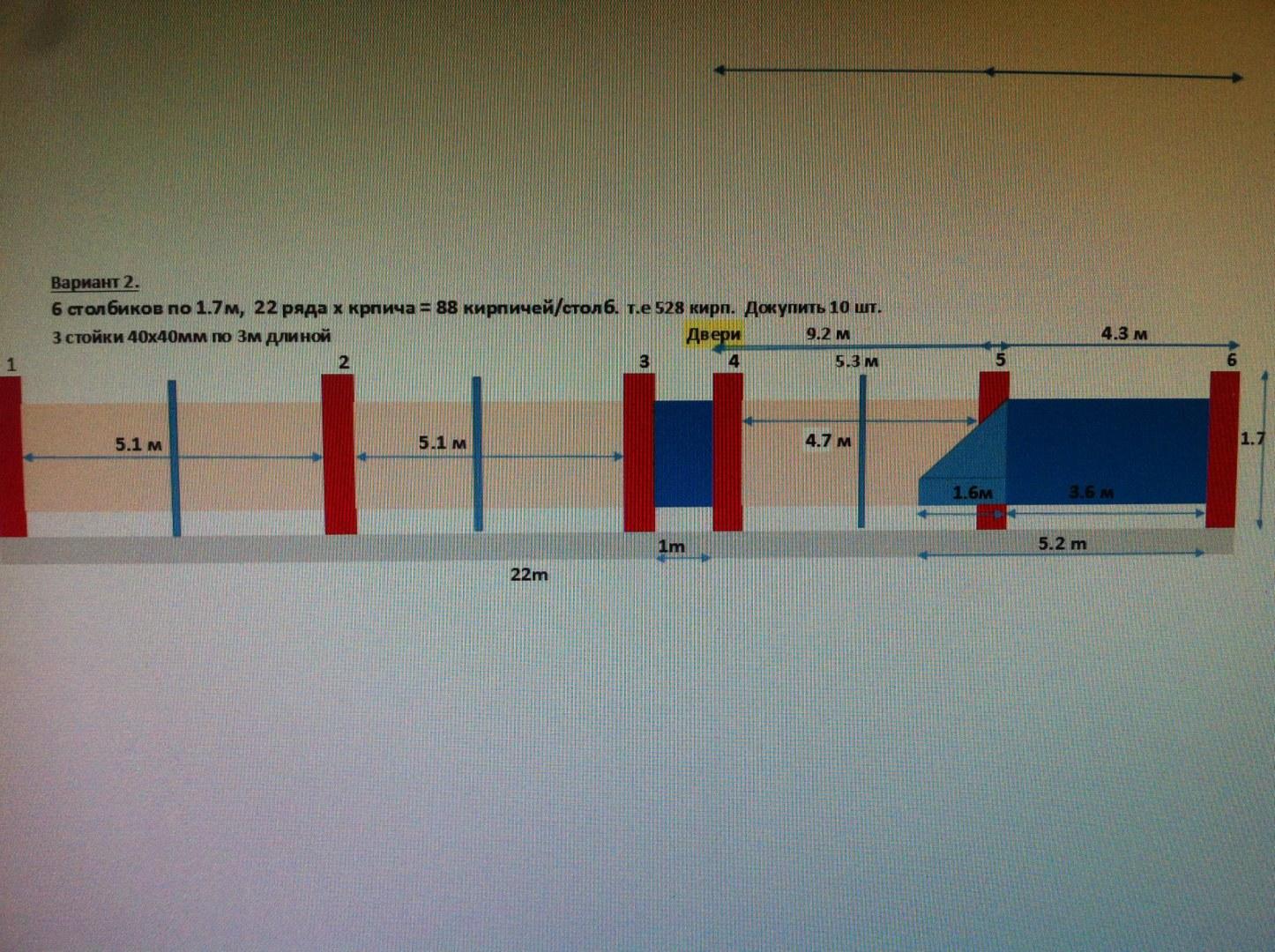 2.Кладка столбиков 40х40х170см ( 6 шт) из клинкерного кирпича с устройством закладных элементов для калитки, ворот и квадратных труб для крепления профнастила.