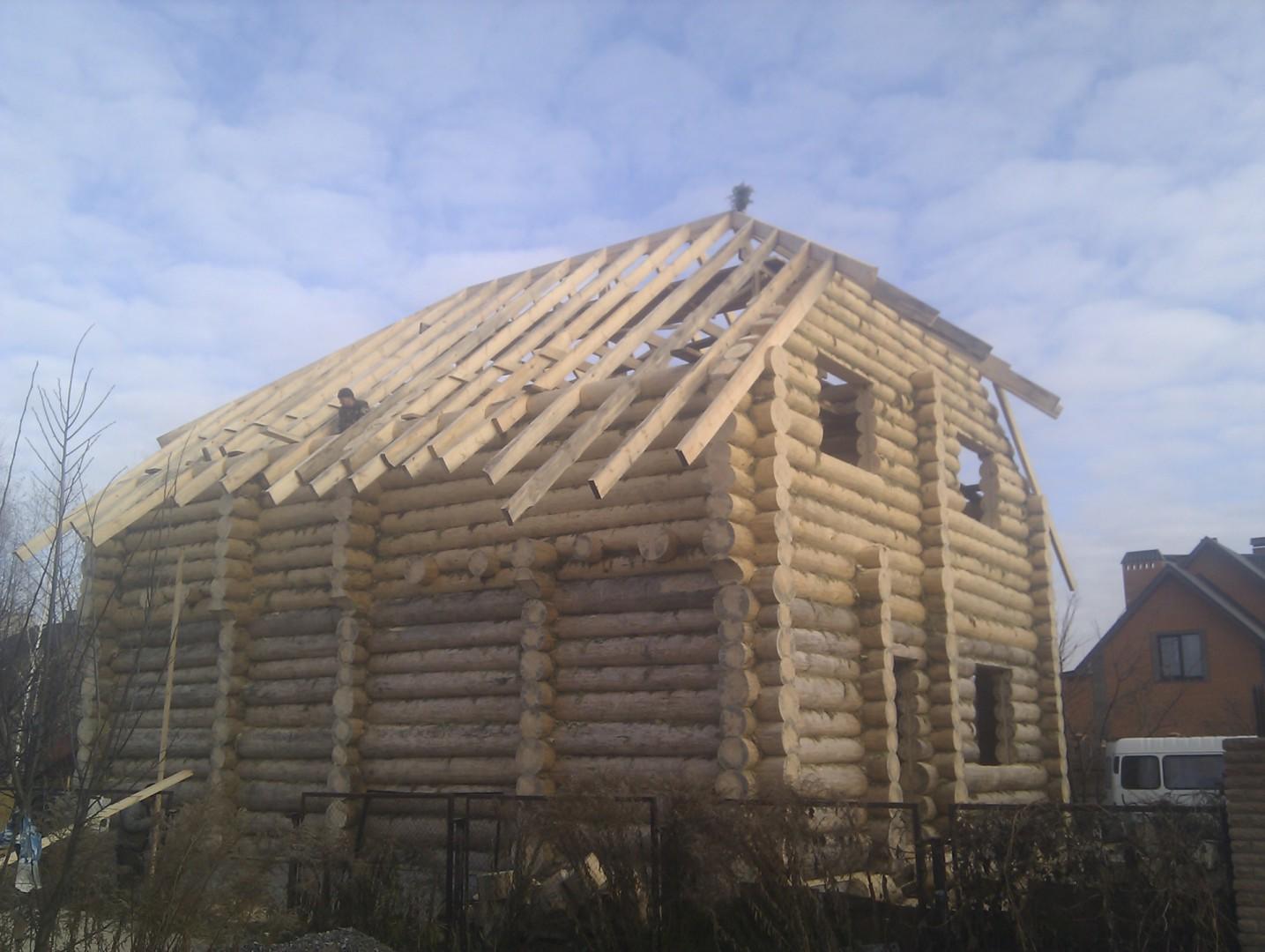 Пусть сруб даст усадку,потом с умом установить исправить стропильную систему и только затем ложить пирог кровельного покрытия.