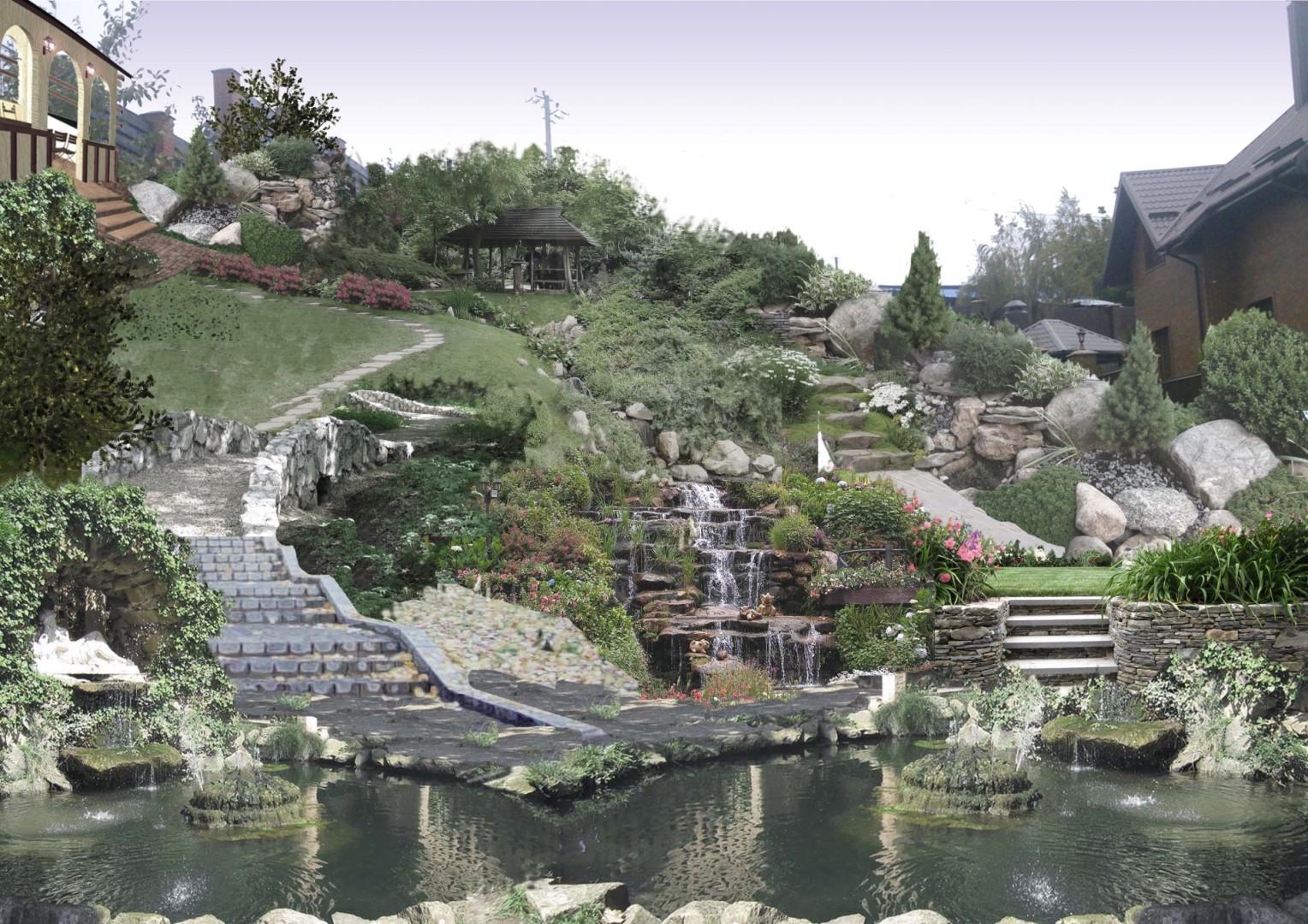 Это большой кусок, работы и геологическая разработка грунтов, а потом разработка ландшафтного проекта, утверждения этого проекта с заказчикам, а лишь потом воплотить в реальность этот проект ландшафта.