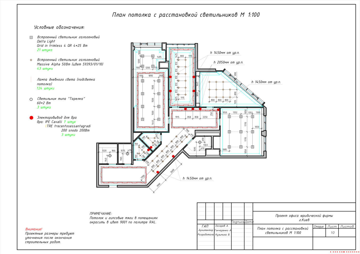 Монтаж светильников розеток и выключателей,согласно проекту. Потолки и перегородки гипсокартон.Розетки 93шт в гипсокартон и 15шт в бетонный пол, выключатели 13шт.