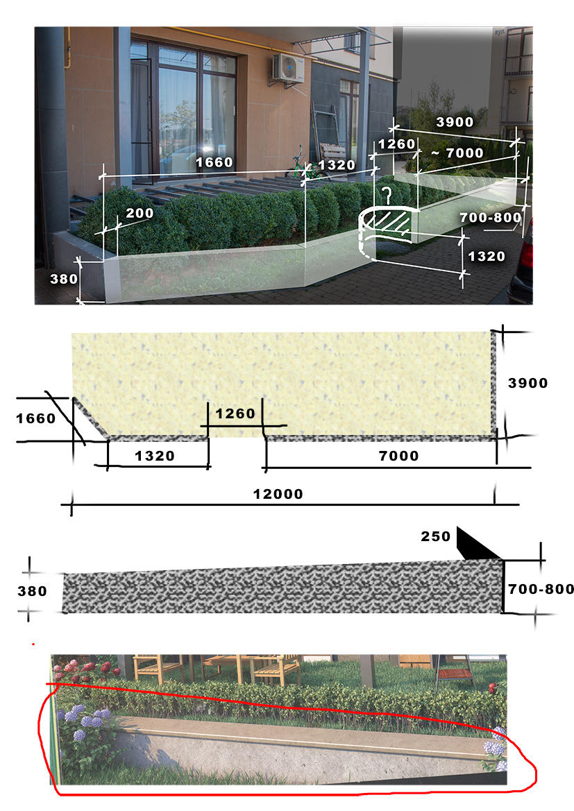 Необходимо сделать подпорную стенку вокруг палисадника, желательно бетонную (или любое основание под отделку)