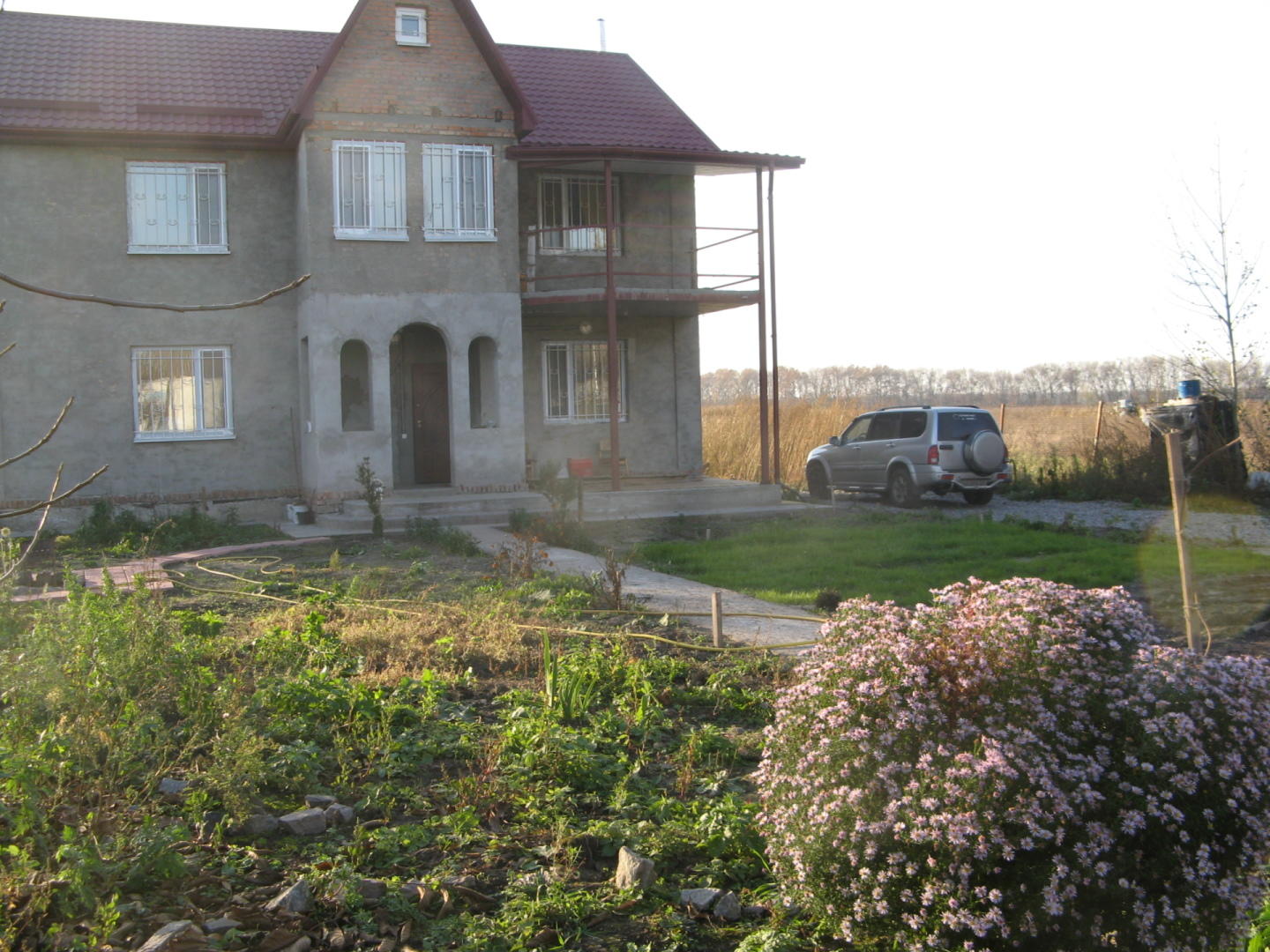 Двухэтажный дом в селе Великополовецкое (17 км от Белой Церкви, 25 км от Сквиры). Стены площадью 300 кв.м утеплены пенопластом, затянуты сеткой и зашпатлеваны одним слоем клея для армировання Anserglob ВСХ40. Нужно погрунтовать грунтовкой глубокого проникновения, зашпатлевать с набрызгом или разгладить рельефным валиком еще одним слоем клея для армировання Anserglob ВСХ40 и покрасить в 2 слоя фасадной краской. Кроме того, есть 3 кирпичных фронтона общей площадью 30 квадратных метров без утепления. Нужно зашпатлевать клеем Anserglob ВСХ39, затянуть сеткой (без пенопласта) , и далее – как остальную поверхность дома. Материалы –мои. Строительные леса и инструмент – ваши.