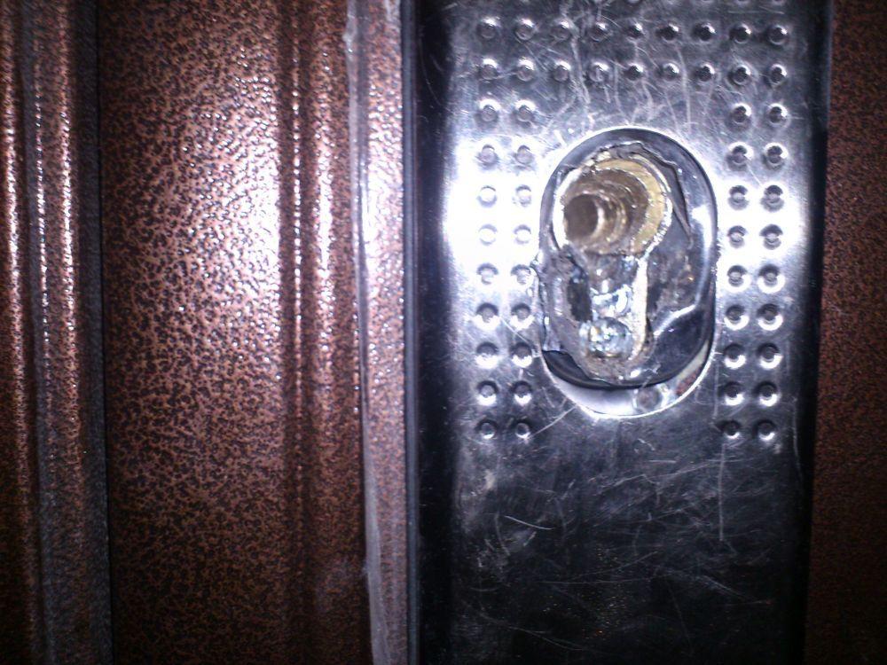 Нужно открыть дверь не ломая самой двери. "Специалисты" уже пытались открыть (смотри фото)