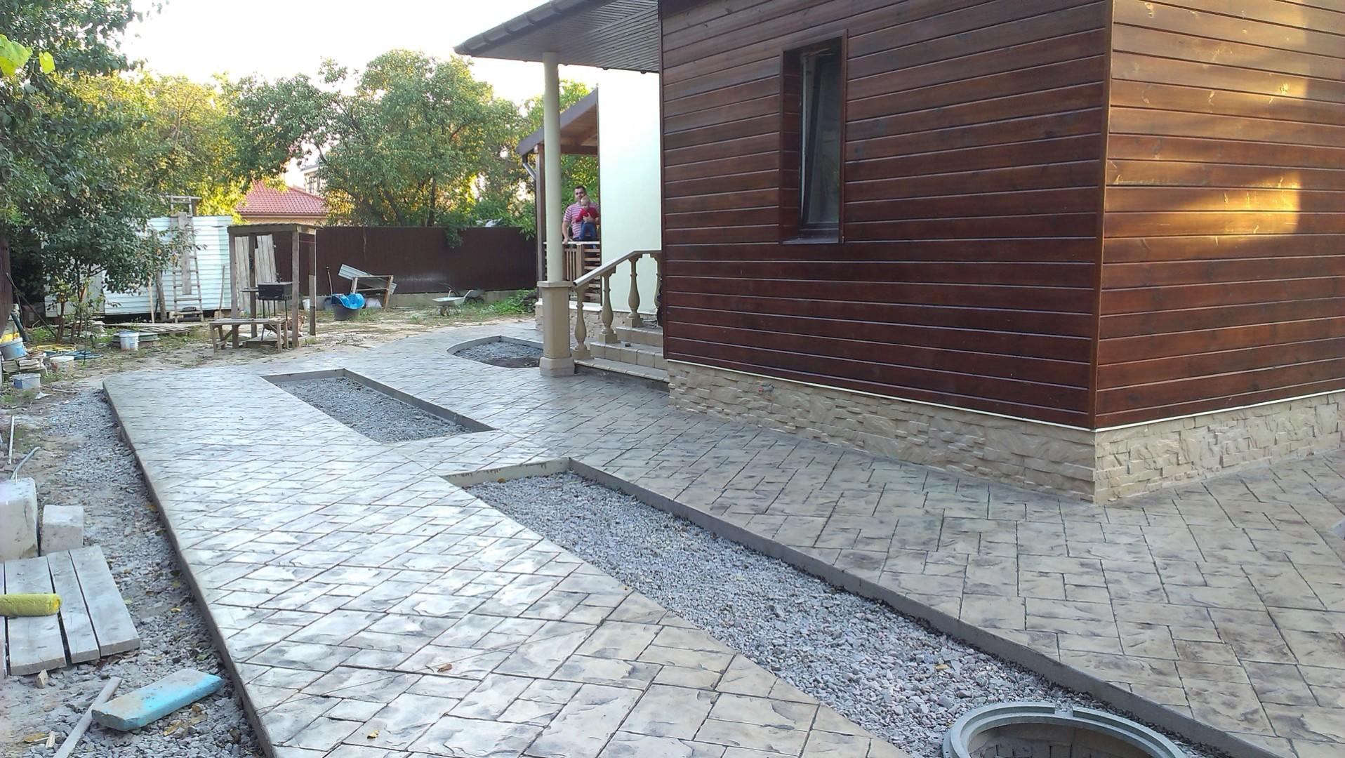 Наша компания профессионально занимается устройством бетонных дорожек и наливных полов. Наш сайт em-bud.com.ua, можете посмотреть примеры наших работ.