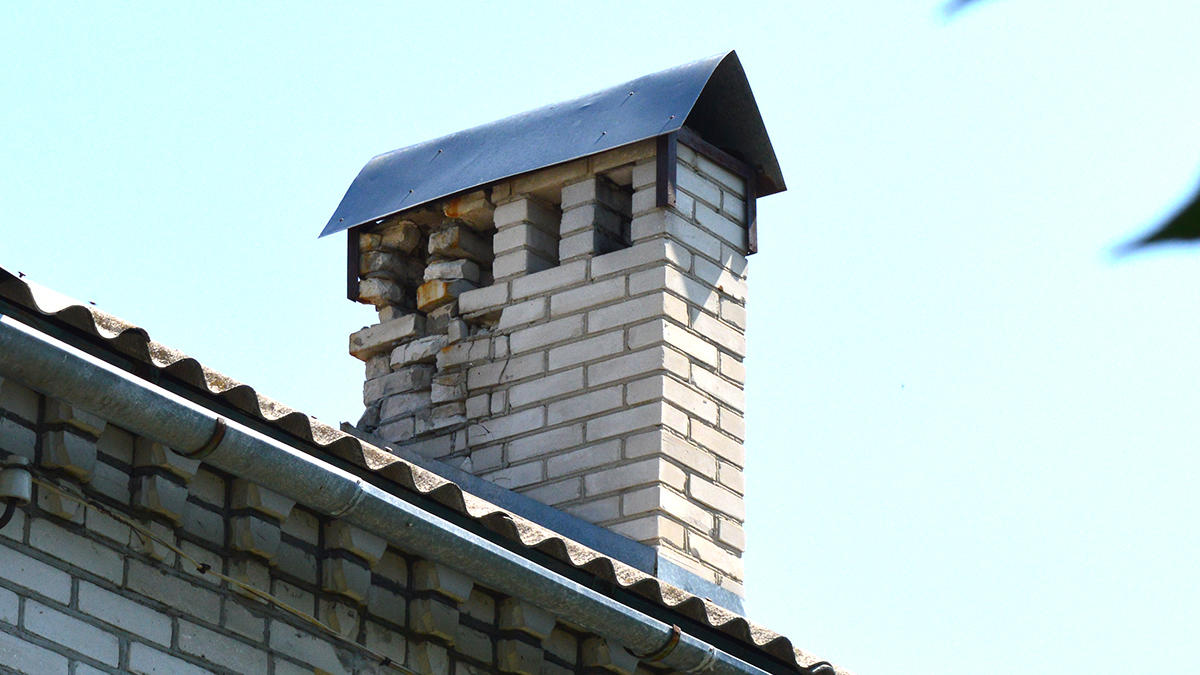 Нужен ремонт дымохода на крыше. Дымоход из белого кирпича. Дом двухэтажный.