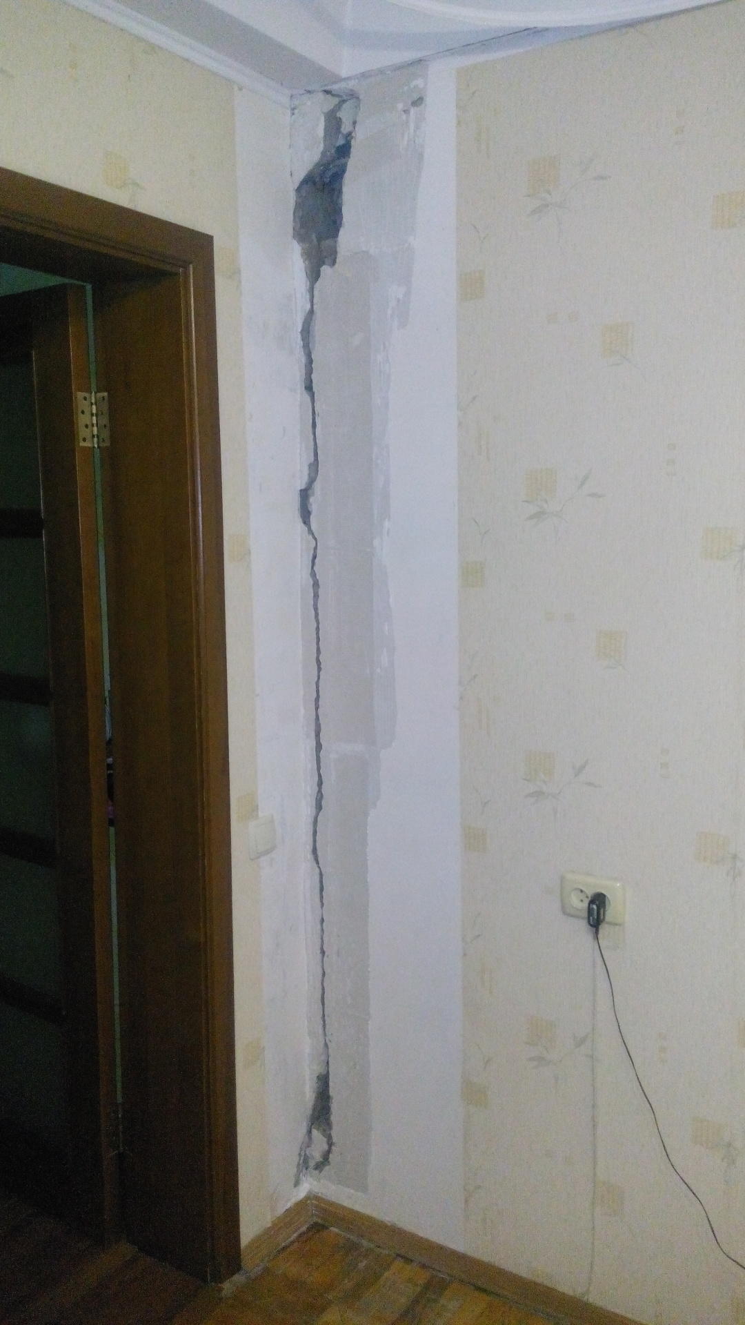 Требуется - ремонт трещины в бетонной стене, шпаклевка, штукатурка.