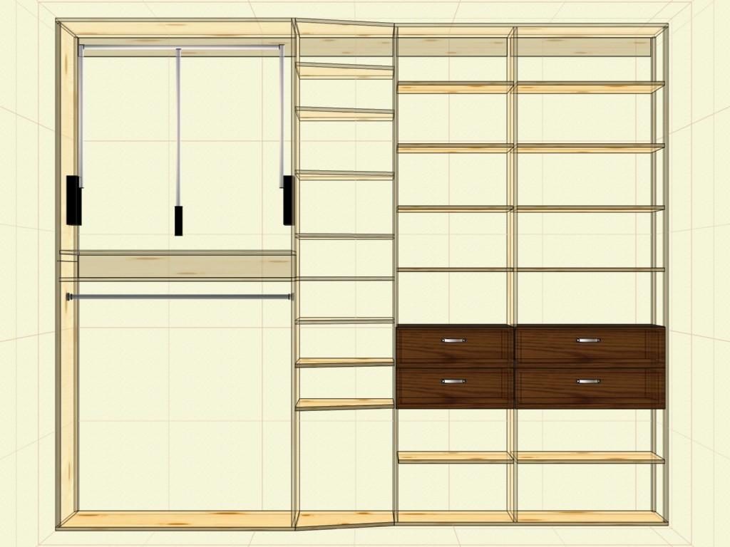 Сборка шкафа, размер: длинна 3100мм, высота 2600мм, две глубины 600 и 400мм. Дверки - распашные, жалюзийные. Материал шкафа - мебельный щит. Схема шкафа - во вложении. Рассматриваем вариант деталировки и распила материала