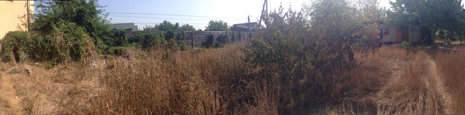 Осокорки, земельный участок 7 соток, удобный заезд. На участке разрушенный одноэтажный домик из белого кирпича (20м), несколько деревьев, все заросло травой.