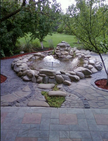 Нужно сделать водоём размером 3х5, глубина 1,5м, обычный, обтянутый пленкой(фото прикреплено ниже). Маленький фонтанчик и водопадик, декорировать галькой или песчанником.