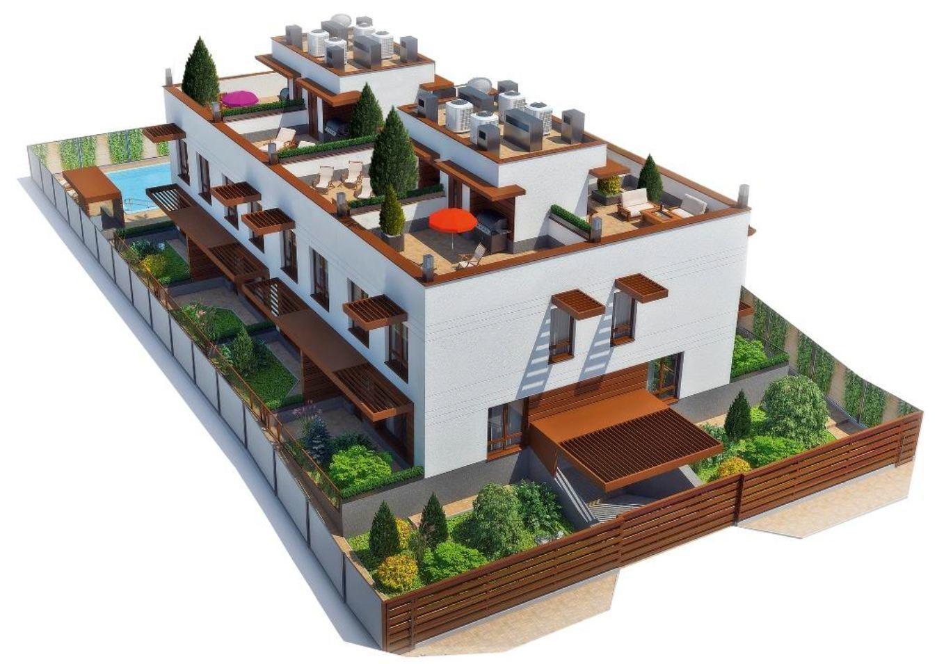 9. Полы террасы на плоской крыше – 200 мм утепление матами из минеральной ваты, армирование, двойная гидроизоляция, стяжка с уклоном к дождевой ливневке.