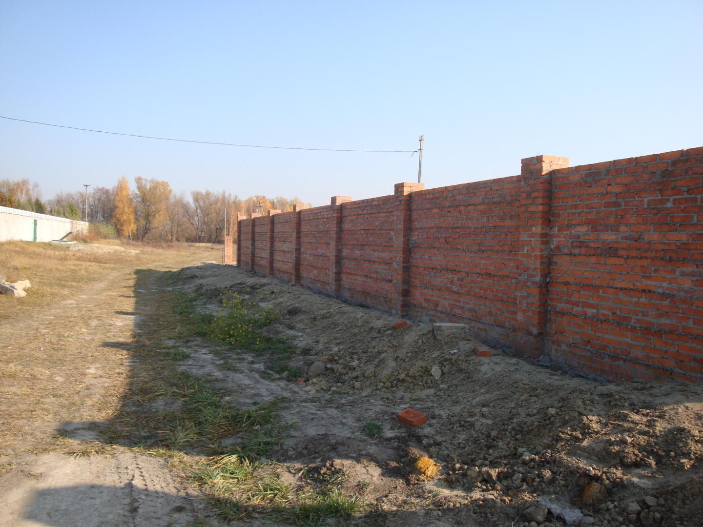 Необходимо выполнить установку бетонных крышек на забор и столбы.