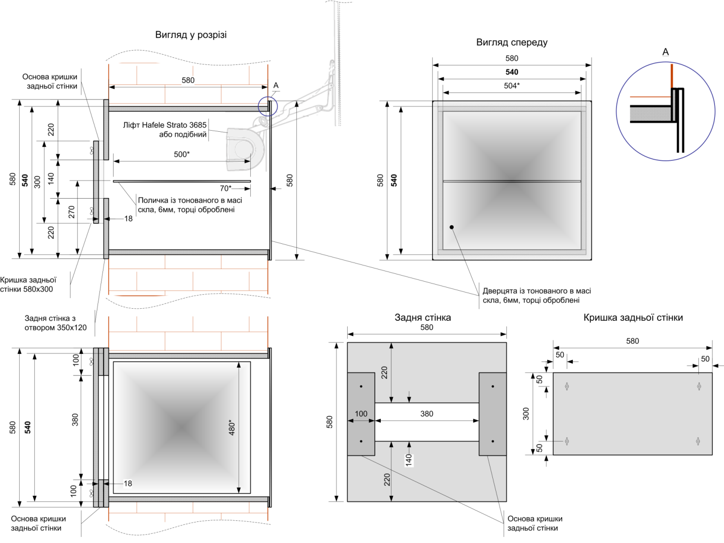 Потрібно виготовити та встановити шафу в нішу в стіні згідно ескізу.