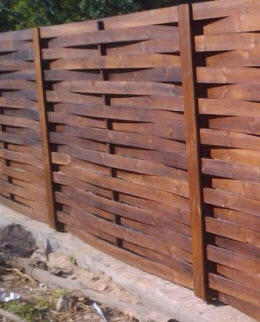 - Зашивка забора и ворот по типу "плетенка" из досок 100*20 (Доски заказчика обработанные и покрытые)