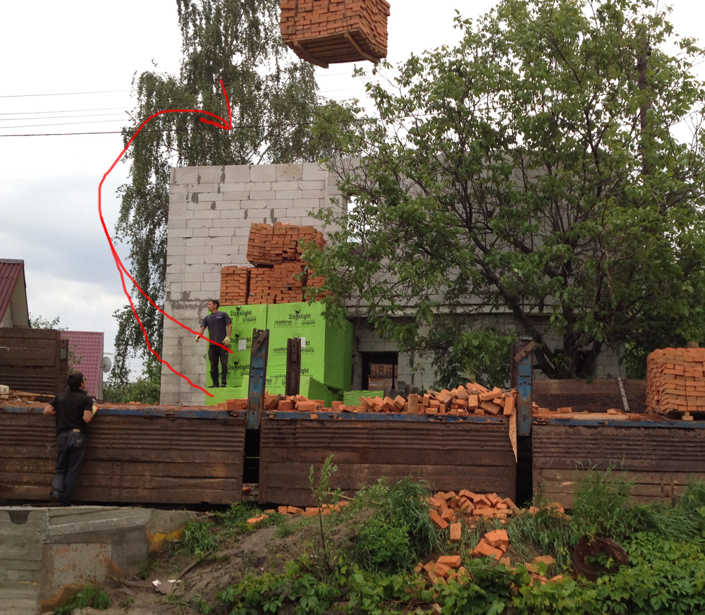 Газоблок стоит под стеной дома в два этажа. Вручную или лебедкой. Аккуратно. За один день.
