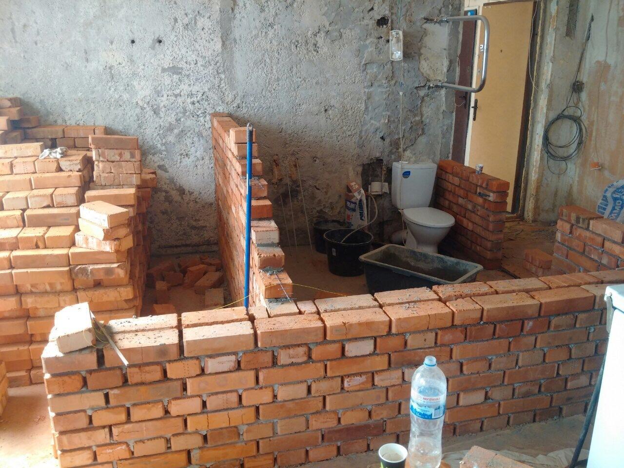 Необходимо завершить перегородки из кирпичной кладки в один и два кирпича с карнизом, полочкой в 6 см и нишей. Чертежи подробные есть, армирование и кирпич - есть.