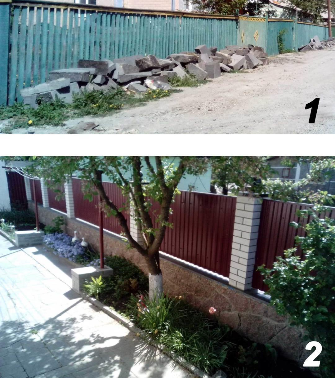 Старый (фото 1)полностью с "фундаментом" убрать и поставить как "на фото 2", углубившись на 30-50 см цементной стяжкой+еще чем, чтоб вода с дороги не шла в огород (моё личное мнение, возможны другие варианты).