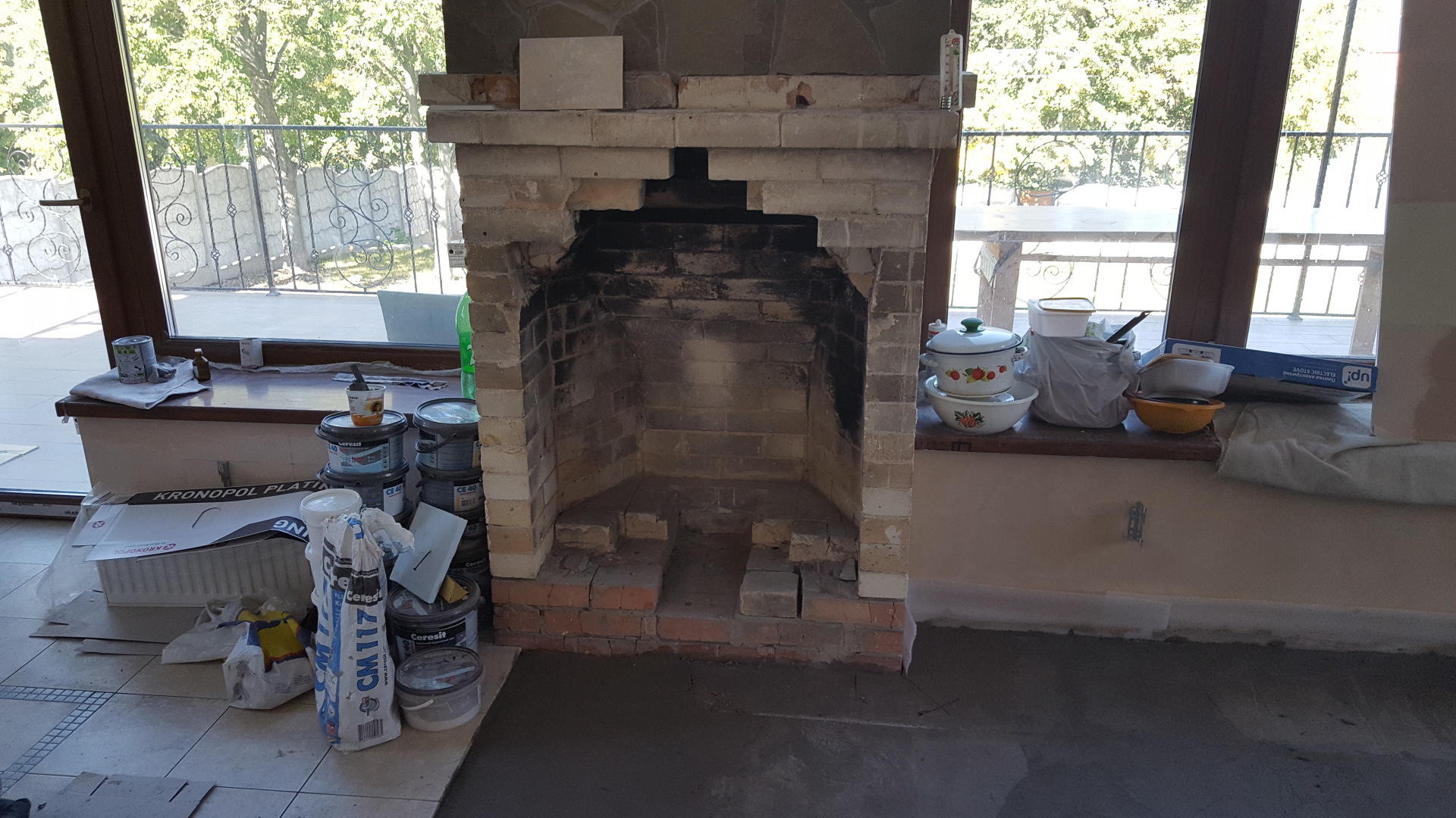 Нужно отремонтировать камин и отделать песчаником. Коробка дома с камином стояла несколько лет без присмотра. Каким-то вандалам понадобилось выбить кирпичи из камина