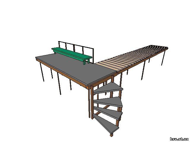 предлагаю из профильной мет. трубы на сварке с устройством дощатого настила. Стоимость можно просчитать после выполнения замеров.