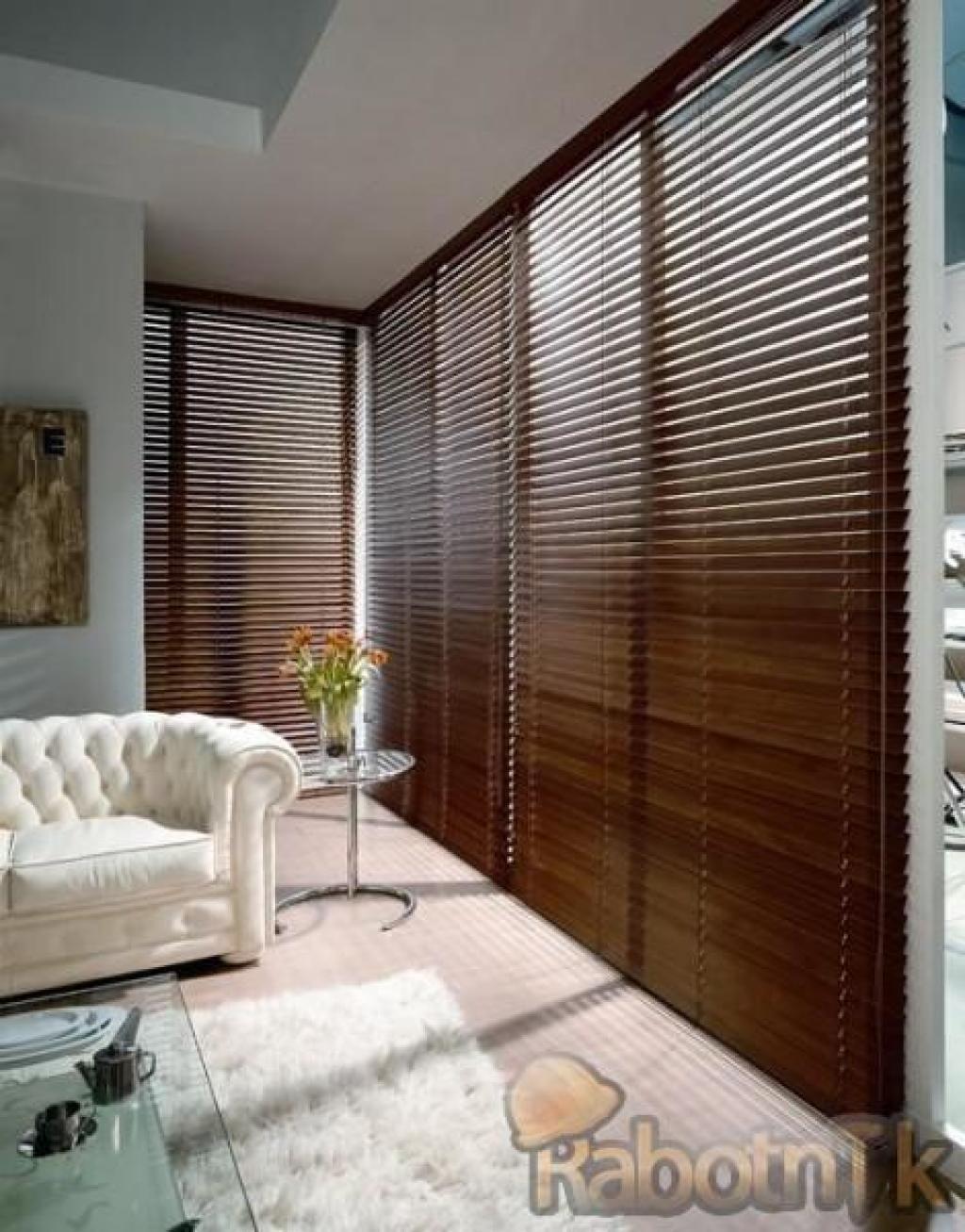 Деревянные горизонтальные жалюзи <br />Их свойства: удобно регулировать поток света, механическая надежность, удобная чистка, широкий спектр комбинации цветов дерева и текстильных компонентов, отличная изоляция от света и тепла.