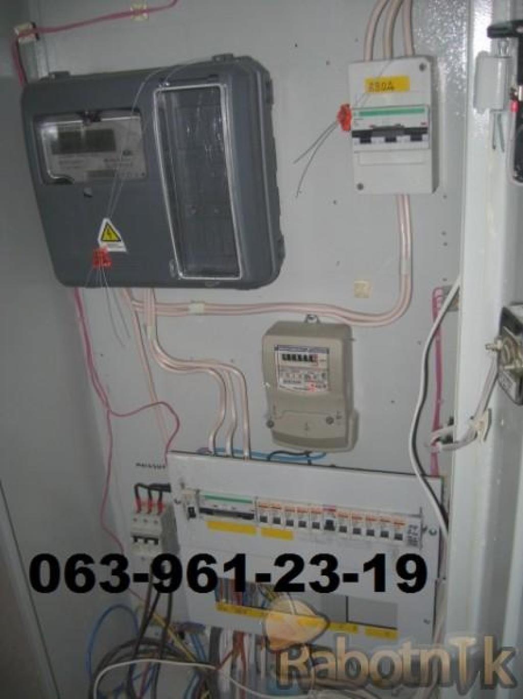 Электрик- люстры, бра, розетки, выключатели, проводка, щитовые, штробление. Выезд в удобное для заказчика время. <br />• Навеска и подключение осветительных приборов(люстры,бра, светильники); <br />• монтаж электророзеток и выключателей; <br />• монтаж электросчетчиков и автоматики; <br />• Восстановление поврежденной проводки и укладка новой(при необходимости штрабление и штукатурка); <br />• подключение бытовой техники и отопительных приборов; <br />• электропроводка, щитовые, электростанции; <br />• установка(ремонт) бытовой техники; <br />• установка домофонов(систем видео наблюдения); <br />• профилактика, обслуживание и ремонт лифтов; <br />• обслуживание скважин, насосных станций; <br />• обслуживание фильтровальных установок; <br />• установка, обслуживание, ремонт шлагбаумов, раздвижных ворот, секционных ворот. <br />• общие рекомендации по экономии энергоносителей; <br />Тел. 050-864-19-46 Звонить с 8-00 до 22-00 Без выходных. <br /> 063-961-23-19