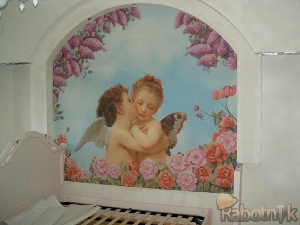 Фрески в спальне. <br />Пример оформления фреской спальни.