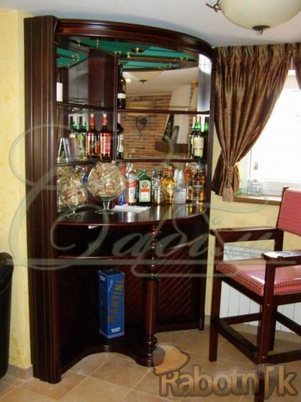 Интерьерная барная стойка Рондо - прекрасно дополнит интерьер бильярдной, гостиной, комнаты отдыха, а в сочетании со стеновыми панелями придаст заключительный штрих в интерьере Вашего дома. <br />Материал изготовления - дерево, МДФ. <br />Размеры: 2100 х 900 х 900 мм. <br />Срок изготовления 3 недели. <br />Цвет под заказ. <br />1400 у.е.