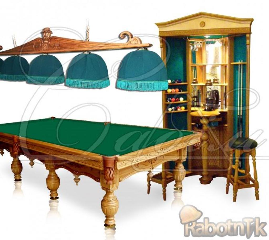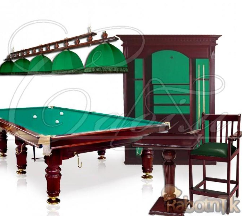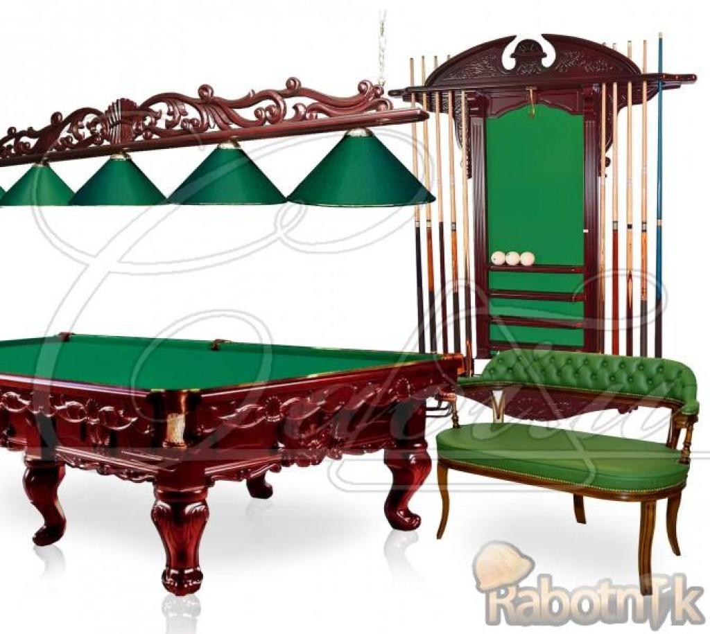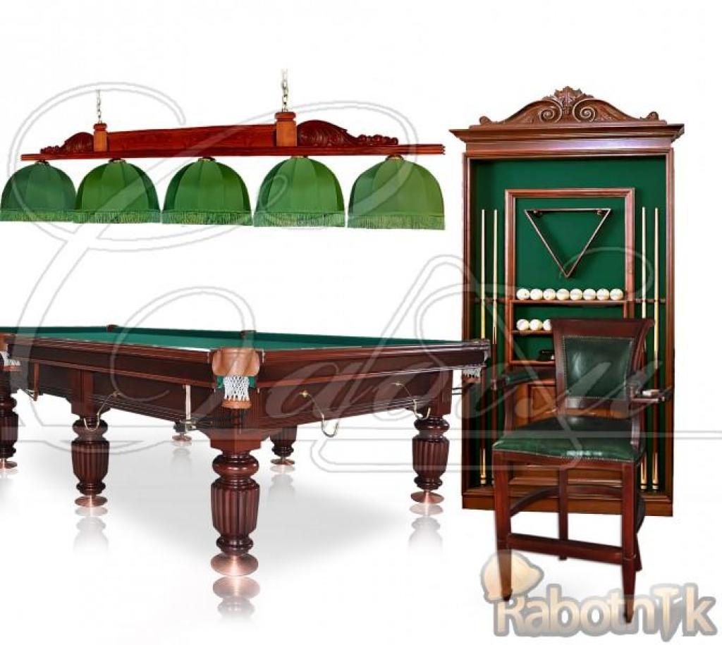 Наряду с продажей бильярдных столов, наша компания занимается обустройством бильярдных клубов и бильярдных комнат в частных домах. Мы предлагаем готовые интерьерные решения для бильярдной комнаты, подбор бильярдного стола, аксессуаров (лампы, светильники для бильярда, мебель и т.д.) и специального оборудования. <br />Бильярдный интерьер "Royal": <br />1. Бильярдный стол "Royal" <br />2. Киевница "Респект" <br />3. Бильярдное кресло "Кардинал" <br />4. Бильярдный светильник "Royal" <br /> <br />При покупке этого бильярдного интерьера, скидка 7%