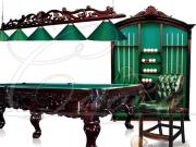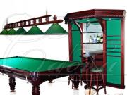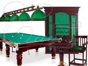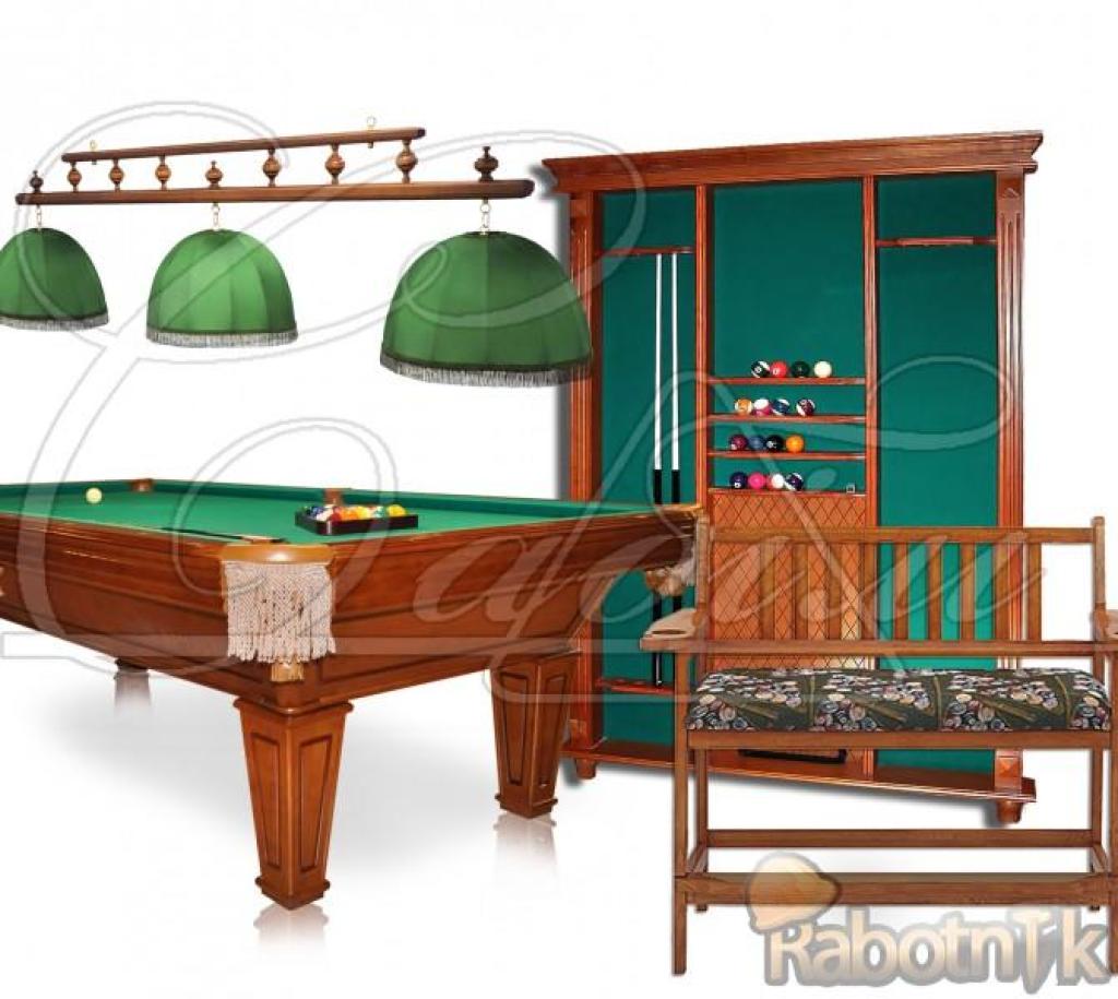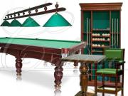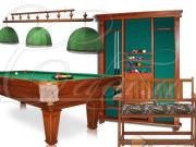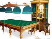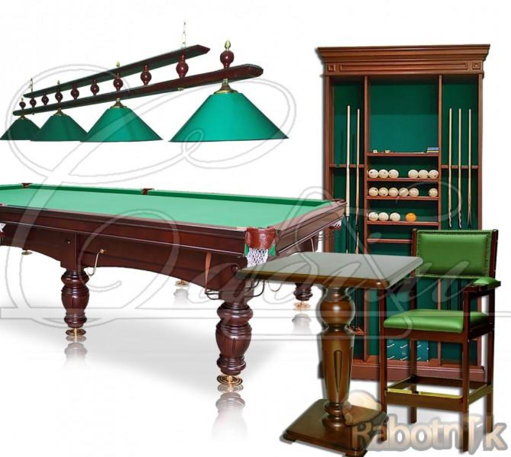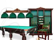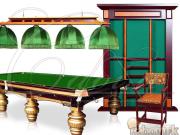 Наряду с продажей бильярдных столов, наша компания занимается обустройством бильярдных клубов и бильярдных комнат в частных домах. Мы предлагаем готовые интерьерные решения для бильярдной комнаты, подбор бильярдного стола, аксессуаров (лампы, светильники для бильярда, мебель и т.д.) и специального оборудования. <br />Бильярдный интерьер "Наполеон": <br />1. Бильярдный стол "Наполеон" <br />2. Киевница "Пул" <br />3. Бильярдный стул-скамья "Раунд" <br />4. Бильярдный светильник "Canazei" <br /> <br />При покупке этого бильярдного интерьера, скидка 3%