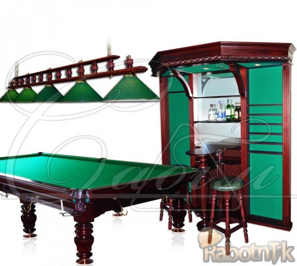 Наряду с продажей бильярдных столов, наша компания занимается обустройством бильярдных клубов и бильярдных комнат в частных домах. Мы предлагаем готовые интерьерные решения для бильярдной комнаты, подбор бильярдного стола, аксессуаров (лампы, светильники для бильярда, мебель и т.д.) и специального оборудования. <br />Бильярдный интерьер "Монарх": <br />1. Бильярдный стол "Монарх" <br />2. Барная стойка "Украина" <br />3. Табурет барный "Классик" <br />4. Бильярдный светильник "Русь" <br /> <br />При покупке этого бильярдного интерьера, скидка 6%