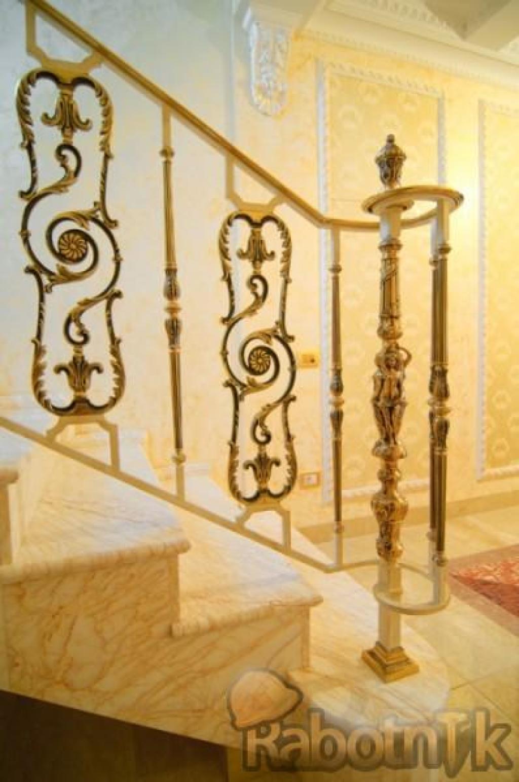 Ограждение лестницы выполнено из латуни производства Франция, фабрика Гранд Форж. http://grande-forge.com.ua/
