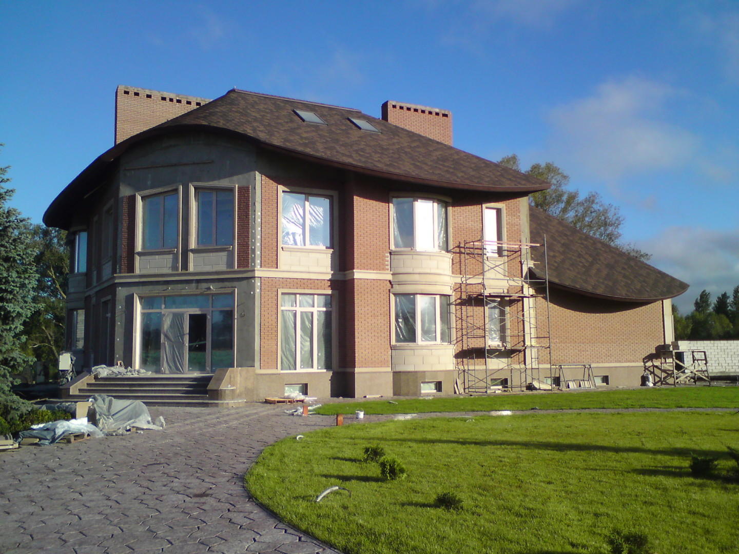 Монтаж декора из искусственного песчаника на фасаде двухэтажного дома, высота фасада 8 метров. Нужны бригады из 2-4-6 человек.